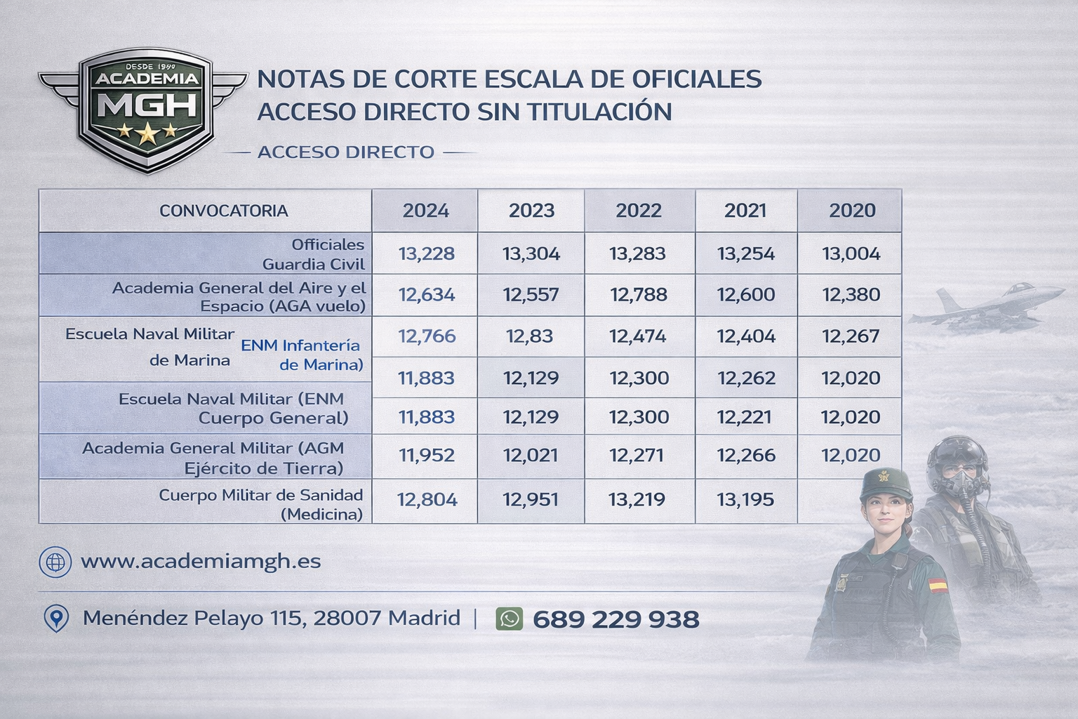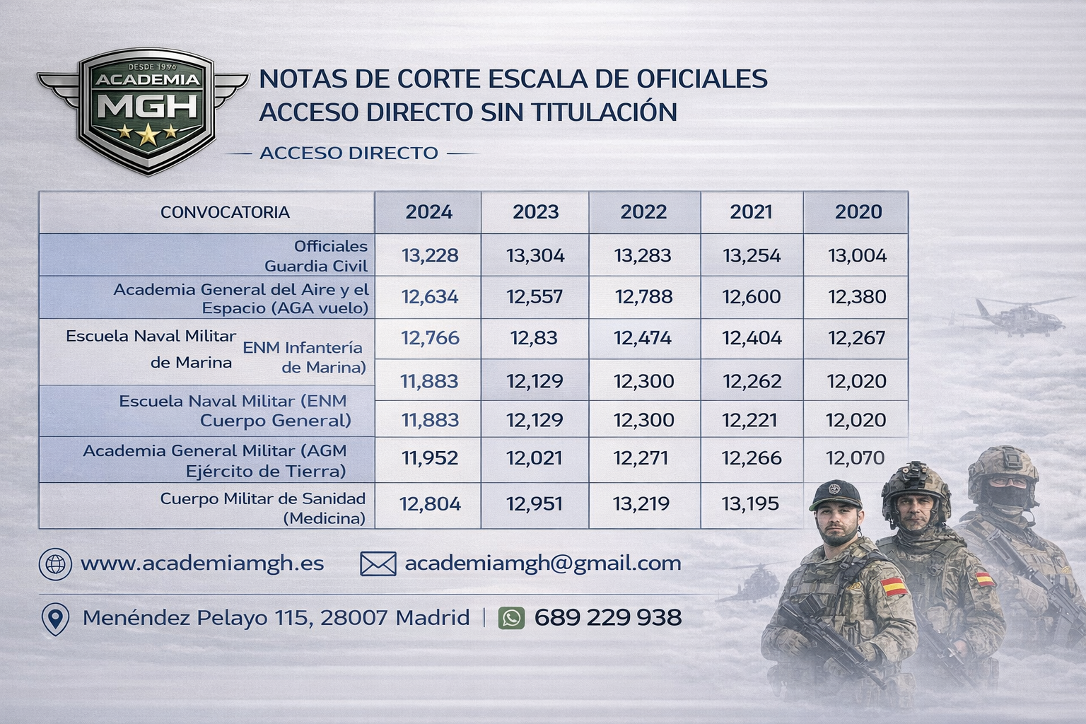 Más de 25 años de experiencia en la preparación de oposiciones militares.