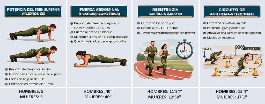 🟨 Nuevas pruebas de aptitud física. Consta de 4 pruebas.